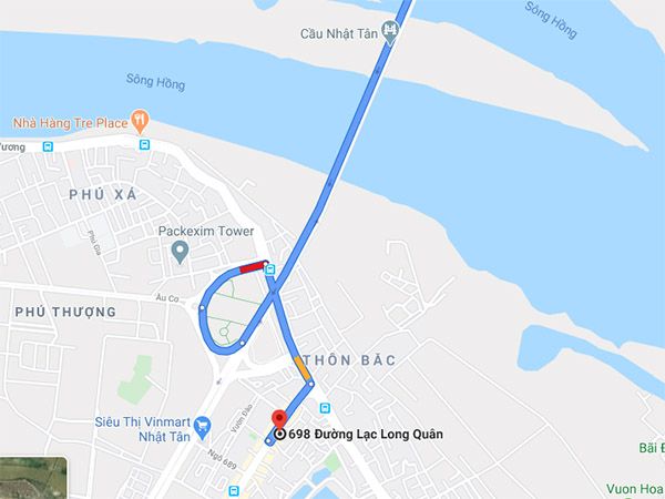 - Về vị trí : địa chỉ Rambo Auto ở 698 Lạc Long Quân, vì vậy việc di chuyển đi lại của bạn sẽ vô cùng dễ dàng khi bạn ở khu vực Đông Anh, bạn chỉ cần đi về hướng Cầu Nhật Tân đi vào nội thành, qua cầu sau đó rẽ phải để vòng lên đê Âu Cơ, rồi rẽ vào Lạc Long Quân như ảnh minh họa bên dưới.
