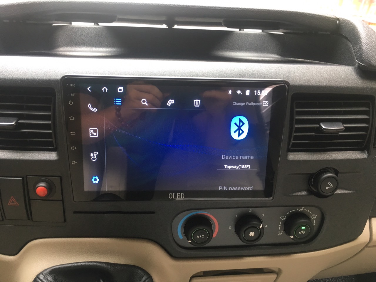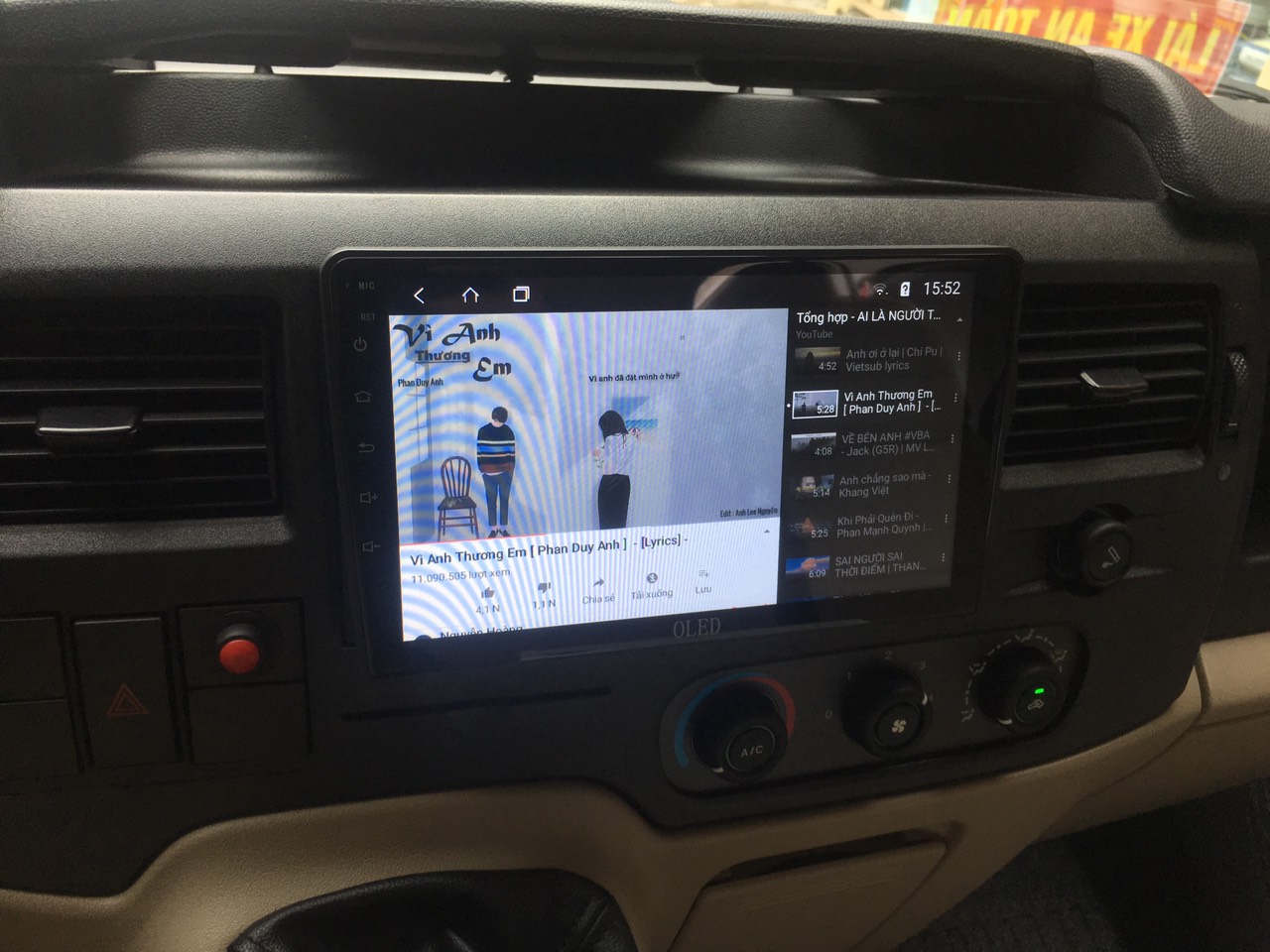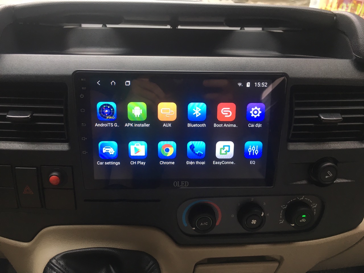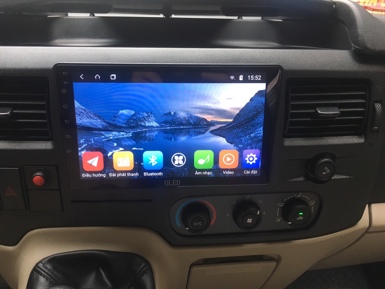 Dvd android oled được lắp đặt hoàn thiện trên xe Transit