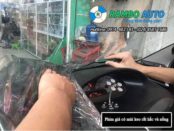 - Phim cách nhiệt chất lượng kém do bị ánh nắng mặt trời khá lâu, sau khi O-xy hóa sẽ phát ra chất độc có một mùi vị khó chịu, gây cảm giác chóng mặt, nôn mửa.