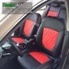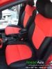 bọc ghế da xe kia forte phối màu đen đỏ cực phong cách, may quả trám tạo sự khỏe khoắn, sang trọng