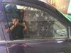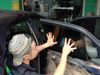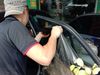 Hình ảnh kỹ thuật viên tiến hành cạo keo cũ của lớp phim cách nhiệt kém chất lượng để lại, công đoạn này mất khá nhiều thời gian, đòi hỏi sự tỉ mỉ, để khi dán mới được đảm bảo, kính trong nhất