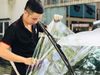 Hình ảnh kỹ thuật viên tại Rambo Auto đang trong cong đoạn lấy phom film dán cho kính lái xe suzuki ertiga